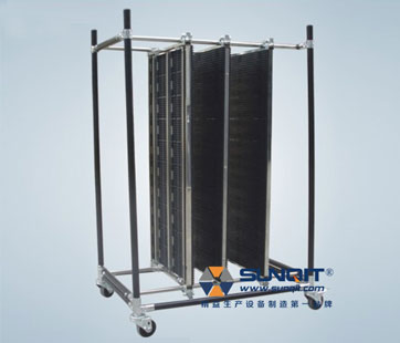此產品為平置存放周轉車。采用第二代精益管(不銹鋼材質)結合第二代精益管配件,腳輪,中空板組合而成。主要應用于物料平置存放。