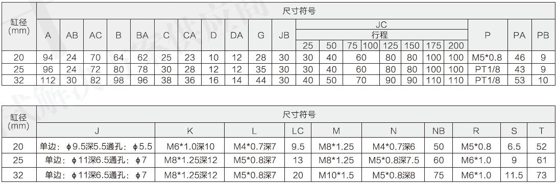尺寸規(guī)格(缸徑20~32)